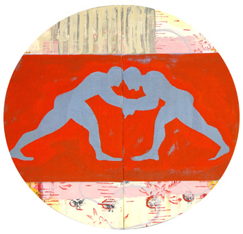 ohne titel, 2004, öl, eitempera, wachsfirnis auf holzkörper, d = 30 cm |