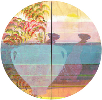 ohne titel, 2003, öl, eitempera auf holzkörper, d = 30 cm, € 400.- |