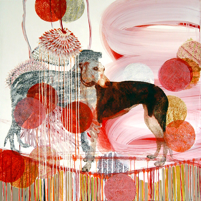 ohne titel, 2009, 120 x 120 cm, öl, tempera, siebdruck auf mdf |